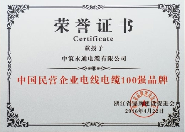公司為浙江省電線電纜行業品牌10強,中國民營企業電線電纜100強品牌,并獲得國家專精特新小巨人企業、國家高新技術企業、省科技型中小企業、省專精特新中小企業、區政府質量獎、浙江制造“品”字標認證等多項榮譽。中策永通電纜有限公司生產設備精湛,技術力量雄厚,加工工藝先進,檢測工序齊全,質量體系完善,售后服務周到。以專業和品質為客戶提供優質的產品與服務,不斷在產品多元化、效益規模化、技術高新化、體制現代化中求突破,繼續擴大和保持在電線電纜領域的引領地位。
